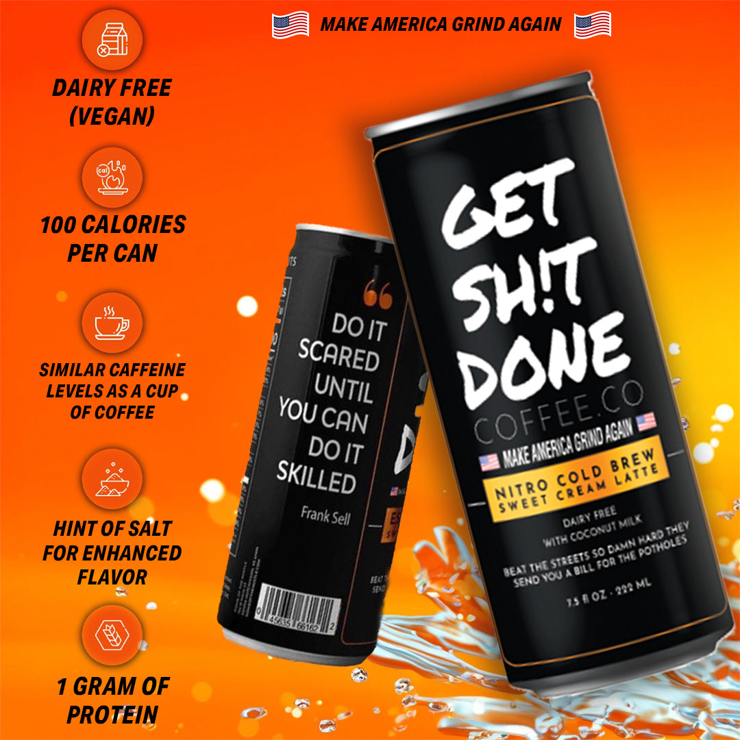 If you've tried other cold brews and they left a WTF taste in your mouth you'll love this coconut sweet cream latte cold brew. That was our personal experience and why we know you'll love this smooth balanced tasting latte. It's a slightly creamy, just sweet enough and the perfect size to quench your "Thirst for first" on the go.